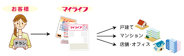 地域密着型の情報紙 マイライフにチラシを折込みます。一般紙をとっていない家庭にも配布されます。