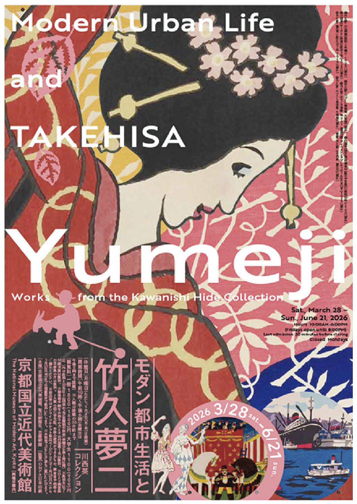 近代日本美術史上の巨匠・竹久夢二は、大正・昭和期には身近なイラストレーター、デザイナーでした。大正期のモダンな大衆文化時代のスターとして人々に親しまれた夢二の作品と共に、夢二に憧れた川西英や恩地孝四郎ら昭和期の画家・版画家たちが描いた都市生活やモダンな景観、前衛と遊びの世界をご覧ください。