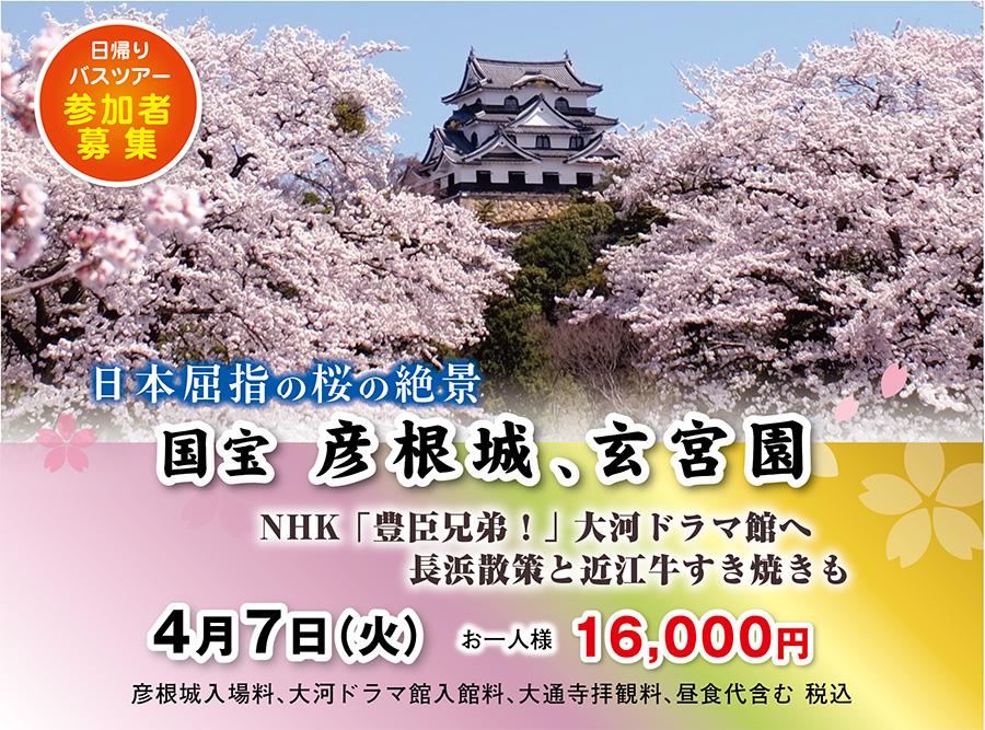 春爛漫。咲き誇る桜に映える名城と名園、話題のNHK大河ドラマ「豊臣兄弟!」ゆかりの地、長浜を旅しませんか。